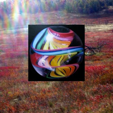 For each individual work, Newman affixes a painting of a spherical object to a photograph twice its size. These matches are carefully considered based on the works' aesthetic compatibility. In most instances, he has personal and aesthetic reasons for combining particular paintings with photographs but he avoids literal narrative connections that lock two images into a rigid partnership. The conjuncture of images is associative and allows viewers to find pleasure in threading connections.